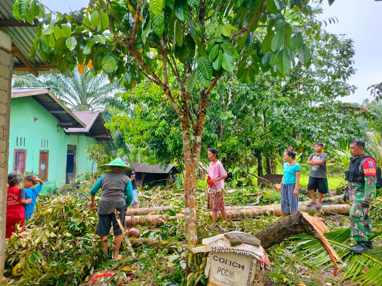 Danramil Kapten Czi.Joko Umbaran saat dikomfirmasi menjelaskan kehadiran Babinsa di lokasi yang terdampak angin puting beliung tidak lain untuk memastikan apakah ada korban jiwa atau tidak ada sekaligus mendata rumah warga yang mengalami kerusakan,