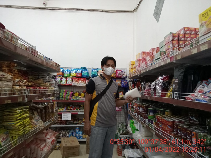 Menyuk – Kepala Unit Intelkam Sektor Menyuke Aipda Ardianto melakukan monitoring harga sembako di sejumlah toko hingga mini market yang berada di wilayah Kecamatan Menyuke, Kabupaten Landak, Jum’at (1/4/2022).