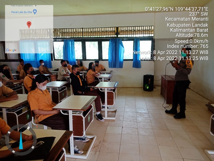 Meranti – Kepolisian Sektor Meranti mensosialisasikan penerimaan anggota Polri tahun 2022 kepada siswa siswi SMA Negeri 1 Meranti Kecamatan Meranti Kabupaten Landak. Jumat (08/04/22).