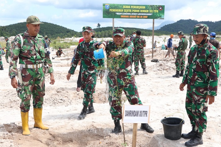 Aksi tanam pohon di lahan sekitar 400.000 Hektar dilakukan bersama dengan masyarakat, dengan mengangkat tema, “Penghijauan Penanaman Sejuta Pohon Rindam XII/Tpr, Hijau Lahanku Sehat Lingkunganku, Bersama Rakyat TNI AD Kuat”.