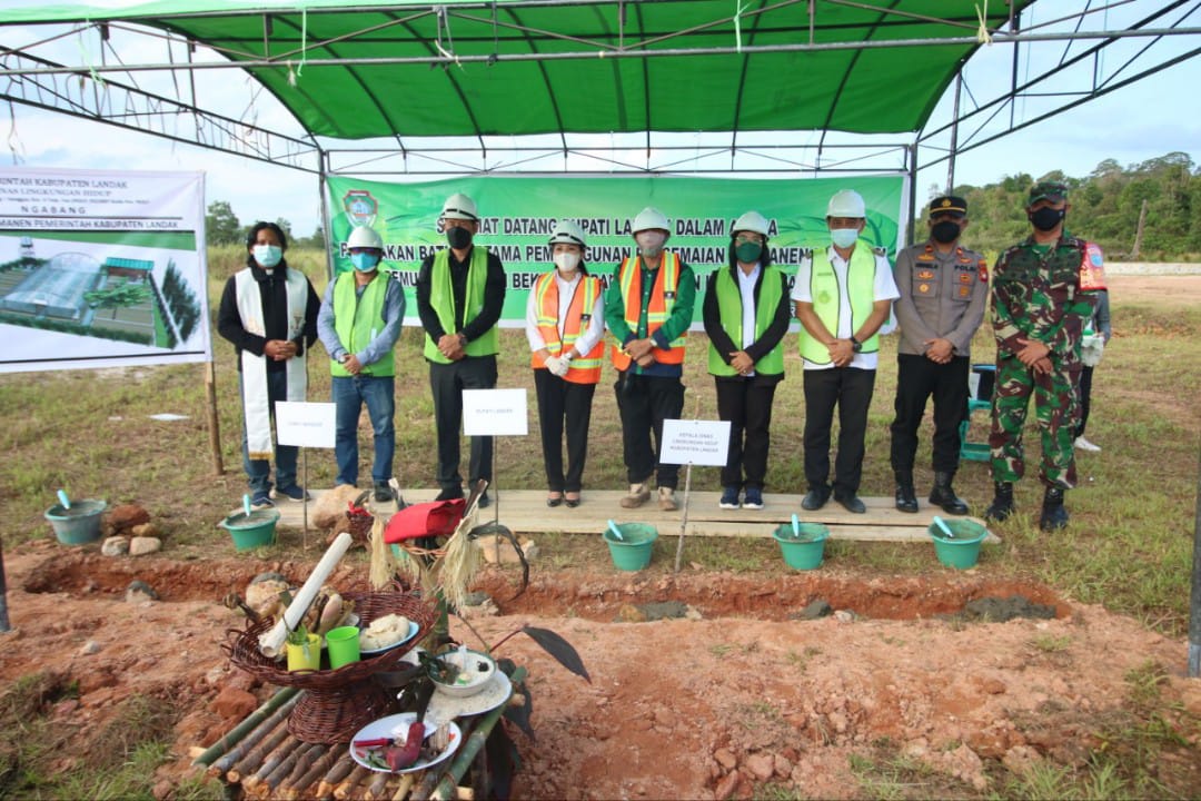 LANDAK – Bupati Landak Karolin Margret Natasa meletakkan batu pertama pembangunan persemaian pemanen di lokasi pemulihan lahan bekas tambang Kawasan Industri Mandor (KIM) atau lahan akses terbuka yang merupakan bentuk komitmen Pemerintah Kabupaten Landak dalam upaya penyelamatan lingkungan, Rabu (18/05/22).