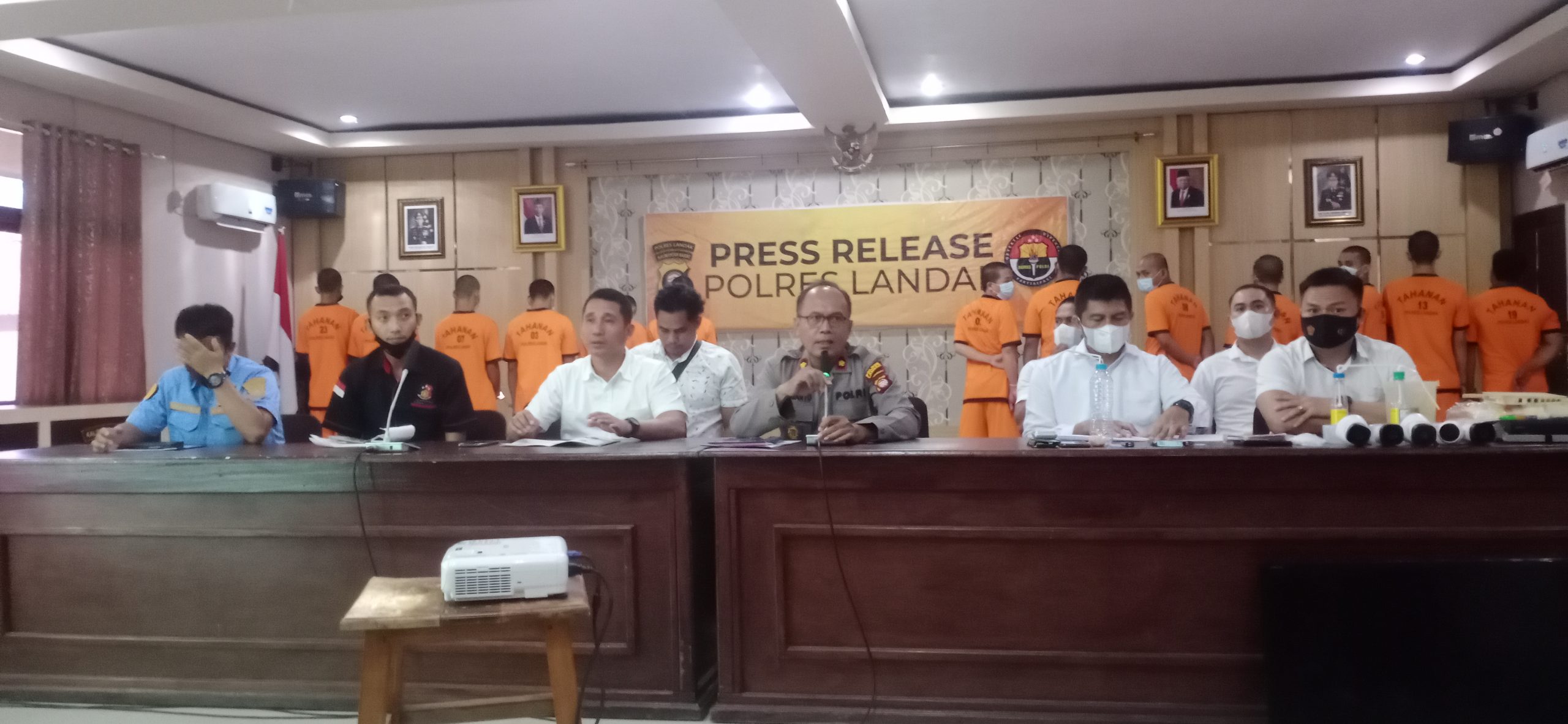 Ngabang – Polres Landak menggelar Press Release, Rabu (08/06/22), kasus di wilayah hukum Polres Landak bulan Mei 2022 di ruang Balai Kemitraan Polisi dan Masyarakat (BKPM) Polres Landak.