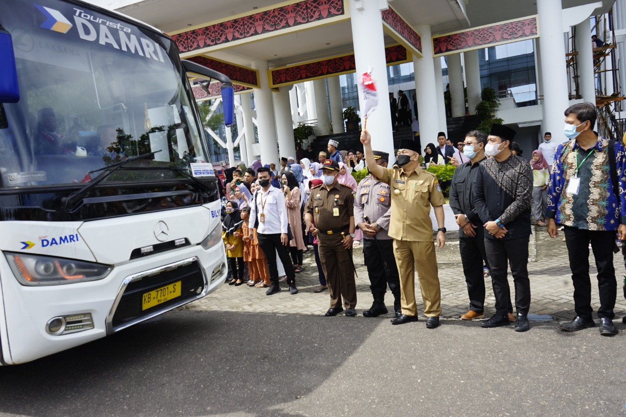 LANDAK – Pj. Bupati Landak Samuel melepas secara resmi Pemberangkatan Jamaah Haji Kabupaten Landak Tahun 1443 Hijriah/2022 Masehi di Aula Besar Kantor Bupati Landak. Selasa (14-06-2022).