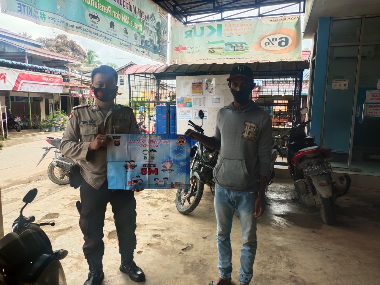 Sosialisasi tersebut seperti yang di lakukan oleh Bripka Timotius Niko mengingatkan dan mengajak kepada warga masyarakat di Desa Darit, menerapkan 5M dalam kesehariannya dalam upaya untuk mencegahan penyebaran wabah Virus Corona atau Virus Covid-19 tersebut.