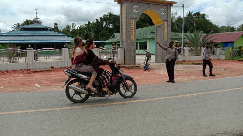 Personel Polsek Mempawah Hulu BRIPKA Albasid dan BRIPTU Reno K yang melaksanakan pengamanan dan pengaturan lalu lintas di depan Masjid Besar Nurul Bustanul Jannah Desa Karangan mengatakan kegiatan ini untuk memberikan rasa aman dan nyaman kepada jamaah melaksanakan ibadah sholat Jum’at.