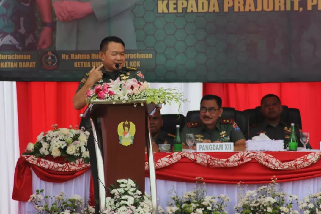 Kasad merasa bangga dengan kinerja yang ditunjukkan oleh prajurit TNI AD yang selalu hadir dan mampu menjadi solusi dalam mengatasi kesulitan rakyat di sekitarnya. Untuk itu dirinya berpesan kepada para prajurit Kodam XII/Tpr agar terus mengimplementasikan 7 (Tujuh) Perintah Harian Kasad.