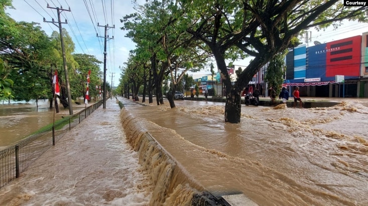 VOA – Hujan lebat yang mengguyur Kota Sorong, Papua Barat, pada Senin (22/8) sekitar pukul 23.30 WIT selama sepuluh jam membuat sejumlah wilayah terendam banjir dan terjadi tanah longsor. Menurut laporan Pusat Pengendalian Operasi (Pusdalops) Badan Nasional Penanggulangan Bencana (BNPB), tiga orang meninggal dunia dalam bencana alam tersebut.