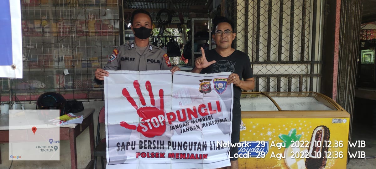 Maka dari itu kami Personil Polsek Menjalin atas perintah pimpinan Bapak Kapolsek Iptu Suwandi S.H., M.H. turun langsung ke lapangan untuk mensosialisasikan agar tindak pidana Pungli bisa di cegah di Kecamatan Menjalin.
