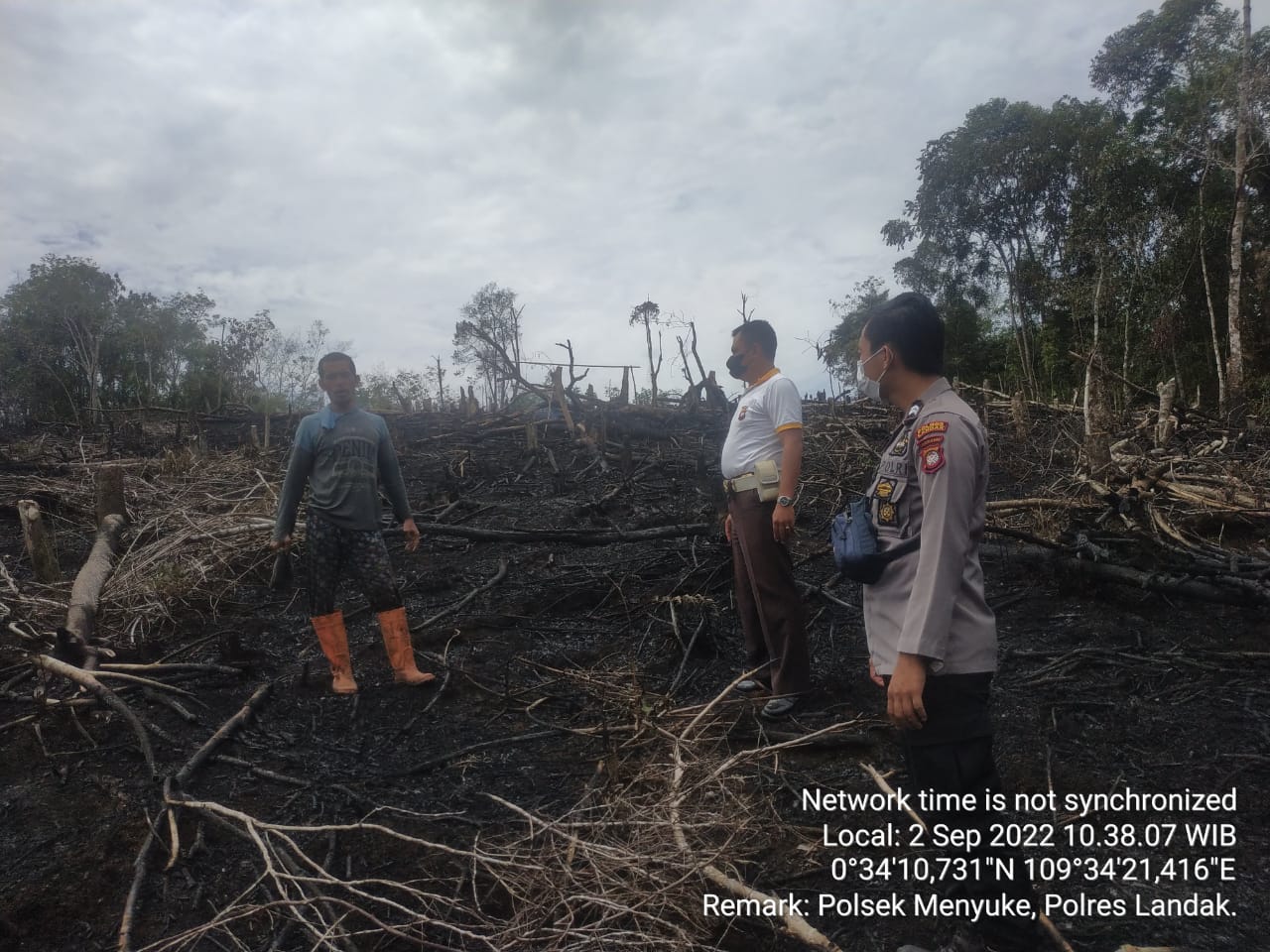 Untuk memastikan titik api sudah padam, anggota Kepolisian Polsek Menyuke pun mendatangi lokasi lahan terbakar pada Jum’at (02/09/22).