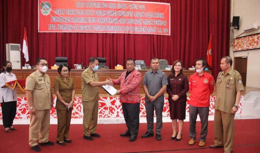 LANDAK – Dewan Perwakilan Rakyat Daerah (DPRD) Kabupaten Landak menggelar rapat Paripurna ke-9 Masa Sidang 1 Tahun 2022 dalam rangka penyampaian pandangan umum fraksi-fraksi DPRD Kabupaten Landak terhadap Nota Keuangan dan Raperda Tentang Perubahan APBD Kabupaten Landak Tahun Anggaran 2022.