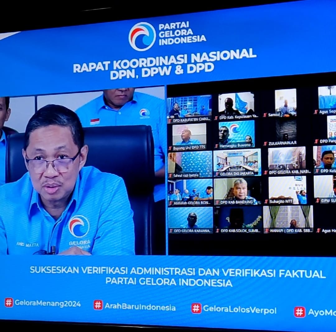 JAKARTA – Partai Gelombang Rakyat (Gelora) Indonesia menggelar Rapat Koordinasi Nasional (Rakornas) untuk menyukseskan pelaksanaan verifikasi administrasi dan verifikasi faktual. Rakornas antara DPN, DPW dan DPD tersebut, digelar secara daring pada Jumat (30/9/2022) malam.