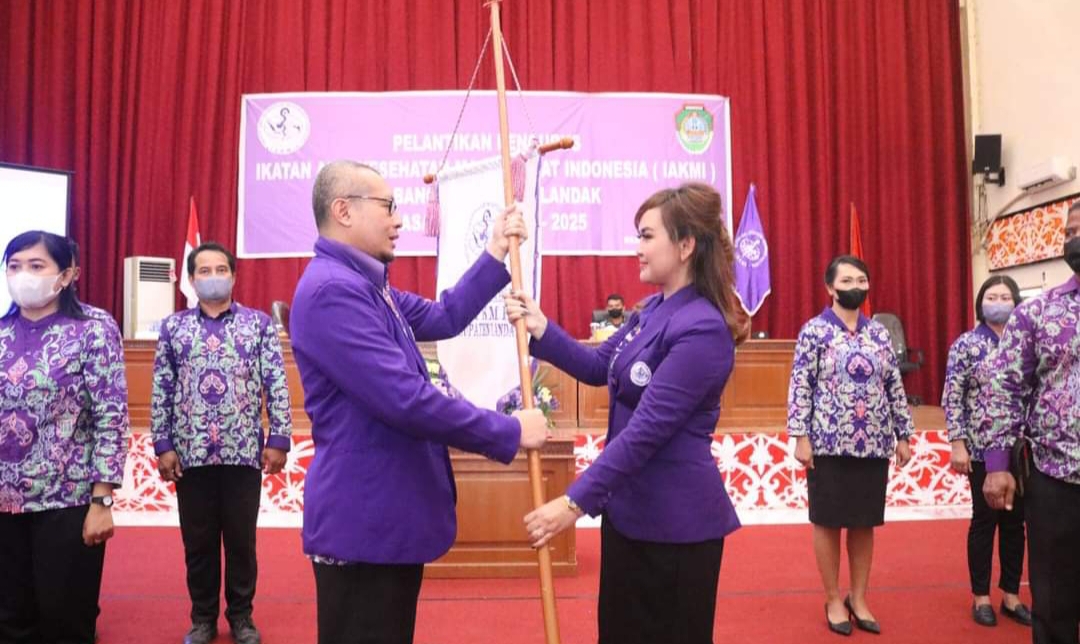 Ketua Komisi C Dewan Perwakilan Rakyat Daerah (DPRD) Kabupaten Landak Margareta, S.K.M., dikukuhkan sebagai Ketua Ikatan Ahli Kesehatan Masyarakat Indonesia (IAKMI) Cabang Kabupaten Landak Masa Bhakti 2022-2025 oleh Ketua Ikatan Ahli Kesehatan Masyarakat Indonesia (IAKMI) Provinsi Kalimantan Barat Rizky Rachmad Akbar, S.K.M., M.Eng.