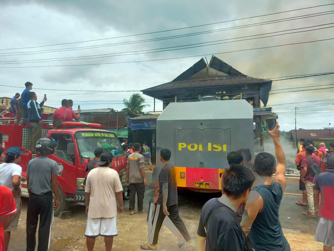 Tidak lama berselang datang Unit pemadam kebakaran Water Canon Polres Landak, Damkar Bhakti Suci Ngabang, Damkar BPASN, Damkar Satpol PP, Damkar Bakti Sentosa