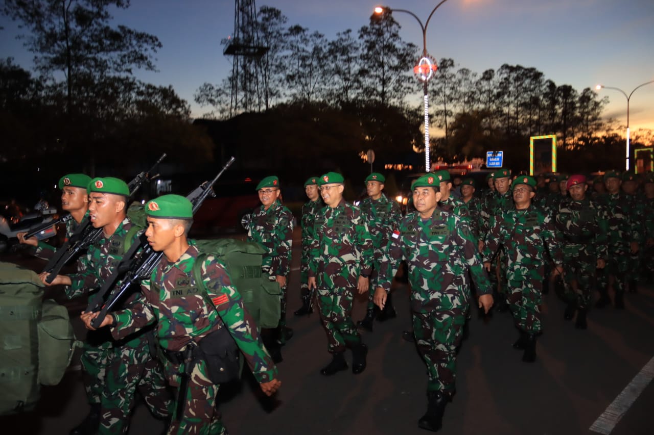 Pontianak, Senin (19/12/22) – Kepala Staf Kodam XII/Tanjungpura, Brigjen TNI Djauhari, S.E., M.M., ikut berjalan kaki mendampingi Peleton inti dari Batalyon Infanteri 642/Kapuas pada etape terakhir Gerak Jalan Peleton Pembawa Simbol Yudha Wastu Pramuka Jaya (YWPJ).