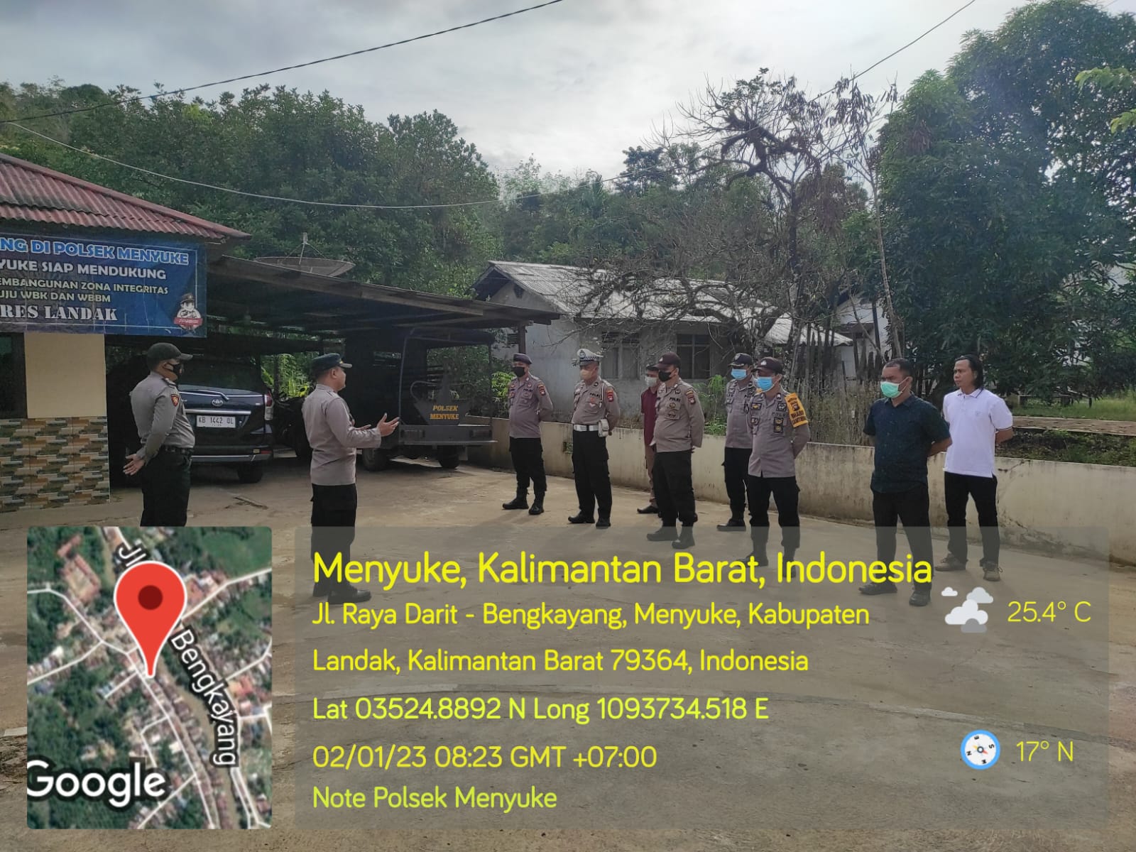 Kapolsek Menyuke berpesan agar seluruh anggota menjaga kekompakan dan kesehatan, berhati hati dan tetap waspada, saling berkordinasi dan melaporkan ke pimpinan dalam menjalankan tugas/giat.