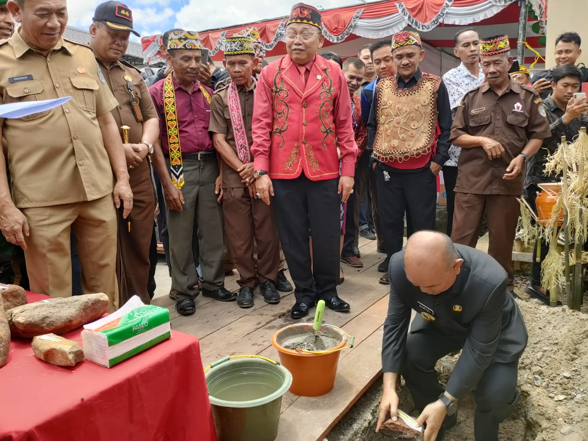 Landak – Pj. Bupati Landak hadiri ritual adat tampung tawar ngalatak batu pakat Binua Pantu Seratus di kawasan Terminal Bus Ngabang, Kabupaten Landak, Kalimantan Barat, Senin (27/02/23).