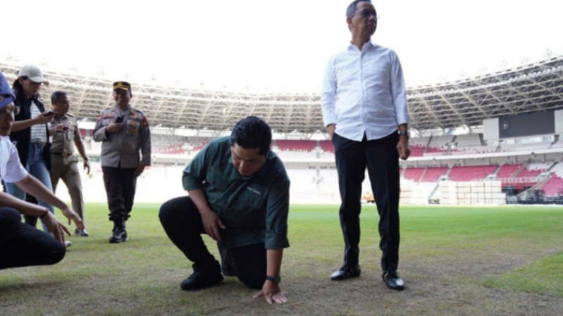 Erick Thohir mengecek kondisi rumput Stadion GBK. (Dok. LOC Piala Dunia U20 2023)© Disediakan oleh TribunPalu.com Erick Thohir mengecek kondisi rumput Stadion GBK. (Dok. LOC Piala Dunia U20 2023)