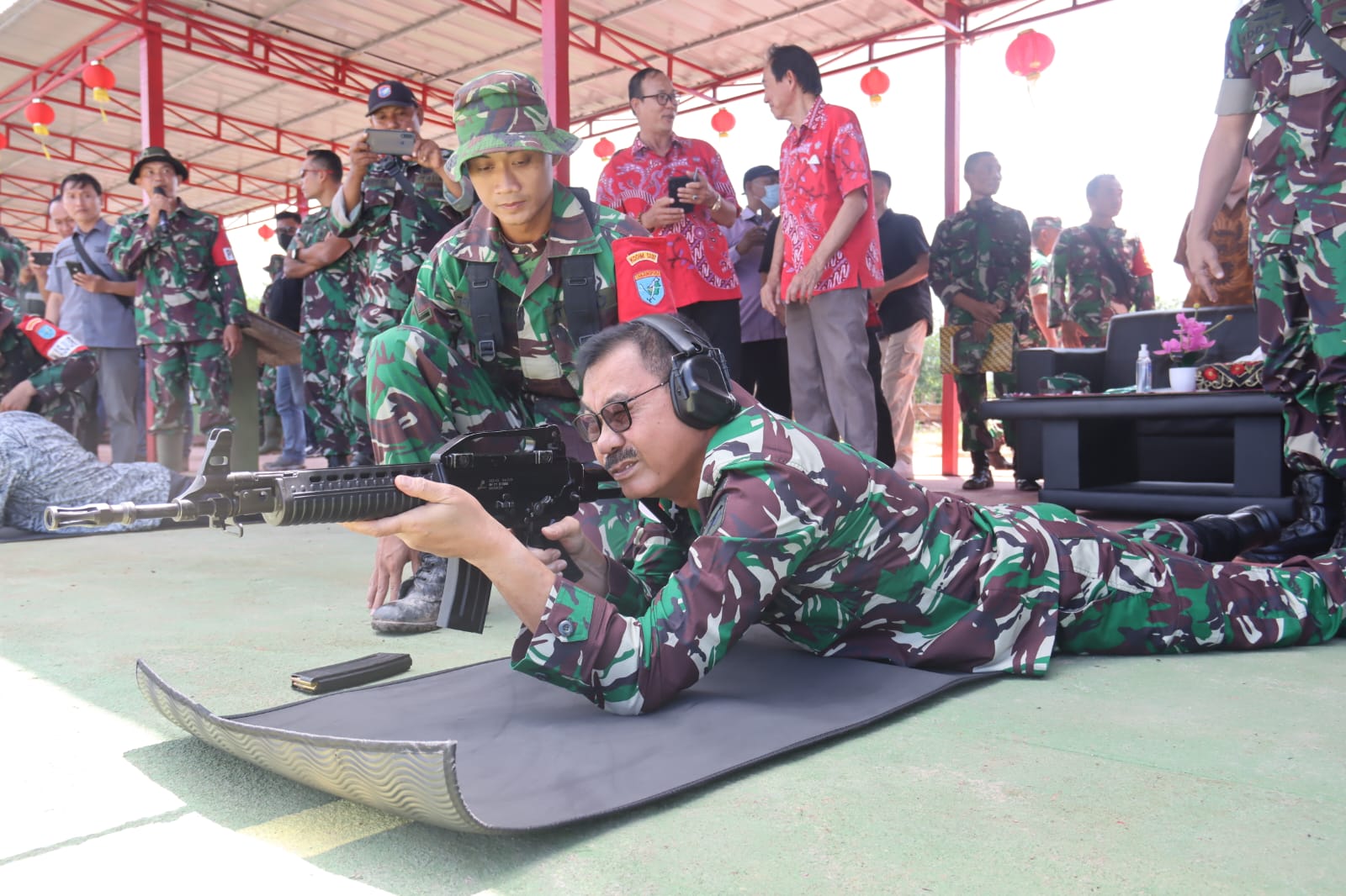 Mempawah, Sabtu (8/4/23) – Panglima Kodam XII/Tanjungpura Mayjen TNI Sulaiman Agusto, S.I.P., M.M., meresmikan lapangan tembak Tidayu Pamungkas Kodim 1207/Pontianak di Dusun Sungai Keramat 2, Batulayang, Jungkat, Mempawah. Peresmian ditandai dengan penandatanganan prasasti dan pemotongan pita oleh Pangdam XII/Tpr Mayjen TNI Sulaiman Agusto. Lapangan tembak 100 Meter ini merupakan kerja sama Kodim 1207/Ptk dengan Pemkab. Mempawah dan PSMTI (Paguyuban Sosial Marga Tionghoa Indonesia) Prov. Kalbar. Mengawali sambutannya Pangdam XII/Tpr Mayjen TNI Sulaiman Agusto mengucapkan terima kasih yang setinggi tingginya kepada semua pihak yang telah mendukung pelaksanaan pembangunan lapangan tembak ini sehingga dapat berjalan dengan lancar sesuai dengan yang diharapkan bersama. Pangdam mengatakan, bahwa dalam TNI memiliki slogan bahwa “latihan merupakan kesejahteraan yang paling hakiki” diantaranya adalah latihan menembak. Menembak dengan sasaran akurat adalah kebutuhan yang sangat mendasar bagi prajurit TNI. Termasuk Prajurit Komando Wilayah harus memiliki kemampuan menembak dengan baik. “Oleh karena itu untuk meraih kemampuan ini hanya dapat dimiliki melalui latihan secara teratur dengan sarana dan prasarana yang memadai, dengan tingkat latihan dan lapangan tembak yang standar,” katanya. Mayjen TNI Sulaiman Agusto berharap dengan telah terwujudnya lapangan tembak Tidayu Pamungkas, kepada seluruh personel agar tetap menjaga dan merawat lapangan tembak ini sehingga manfaatnya dapat dirasakan oleh seluruh personel Kodam XII/Tpr. Selanjutnya, Ia juga menekankan dengan diresmikannya lapangan tembak ini, agar kedepannya masing-masing satuan semakin giat dalam melaksanakan kegiatan latihan menembak guna terpeliharanya kemampuan prajurit dalam bidang menembak. “Untuk itu, fasilitas yang ada agar digunakan dan dimanfaatkan seoptimal mungkin. Pelihara dan rawatlah sarana dan prasana lapangan tembak dengan baik agar masa pakainya lebih panjang dan mampu memberikan yang terbaik bagi para Prajurit,” tutupnya. Usai acara peresmian, Mayjen TNI Sulaiman Agusto bersama dengan sejumlah pejabat Kodam XII/Tpr dan beberapa tamu undangan lainnya melaksanakan bakti sosia dilaknjutkan meninjau sarana dan prasarana sekaligus mencoba langsung lapangan tembak milik Kodim 1207/Ptk. (Pendam XII/Tpr)
