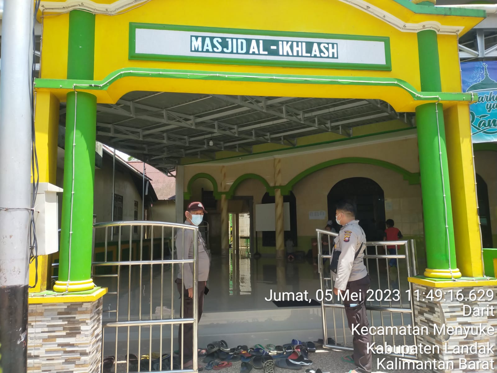 MENYUKE, LANDAKNEWS.ID – Personil Polsek Menyuke Polres Landak memberikan pengamanan kepada warga masyarakat Kecamatan Menyuke yang melaksanakan sholat jum’at di Masjid Al-Ikhlas Darit Desa Darit Kecamatan Menyuke, Ju’mat (05/05/23), siang.