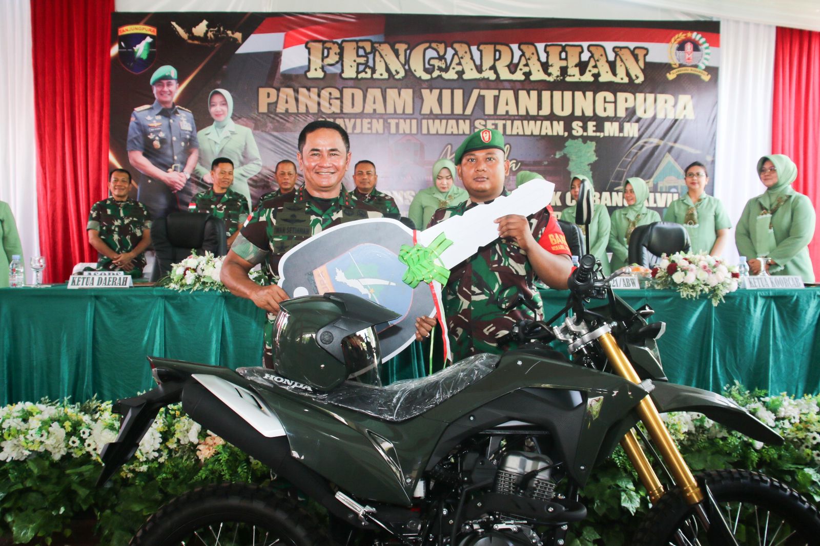 Dalam kunjungan ini Pangdam XII/Tpr memberikan pengarahan kepada prajurit dan anggota Persit, penyerahan motor dinas secara simbolis kepada Babinsa, penanaman bibit pohon durian dan menebar bibit ikan di Kolam Persit.