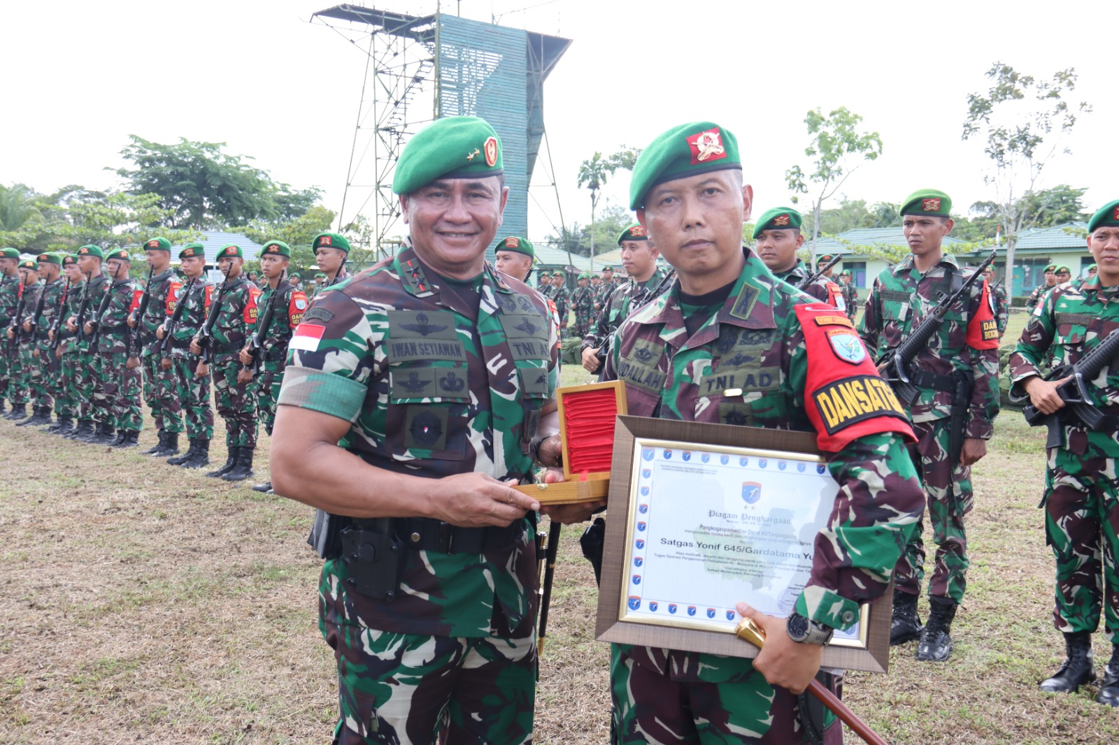 Pangdam XII/Tpr, Mayjen TNI Iwan Setiawan dalam kesempatan tersebut memberikan apresiasi kepada seluruh personel yang telah melaksanakan tugas dengan baik. Banyak capaian yang telah diraih Satgas Yonif 645/Gty mulai dari Muhandak, Narkoba, Ilegal Trading dan sebagainya.