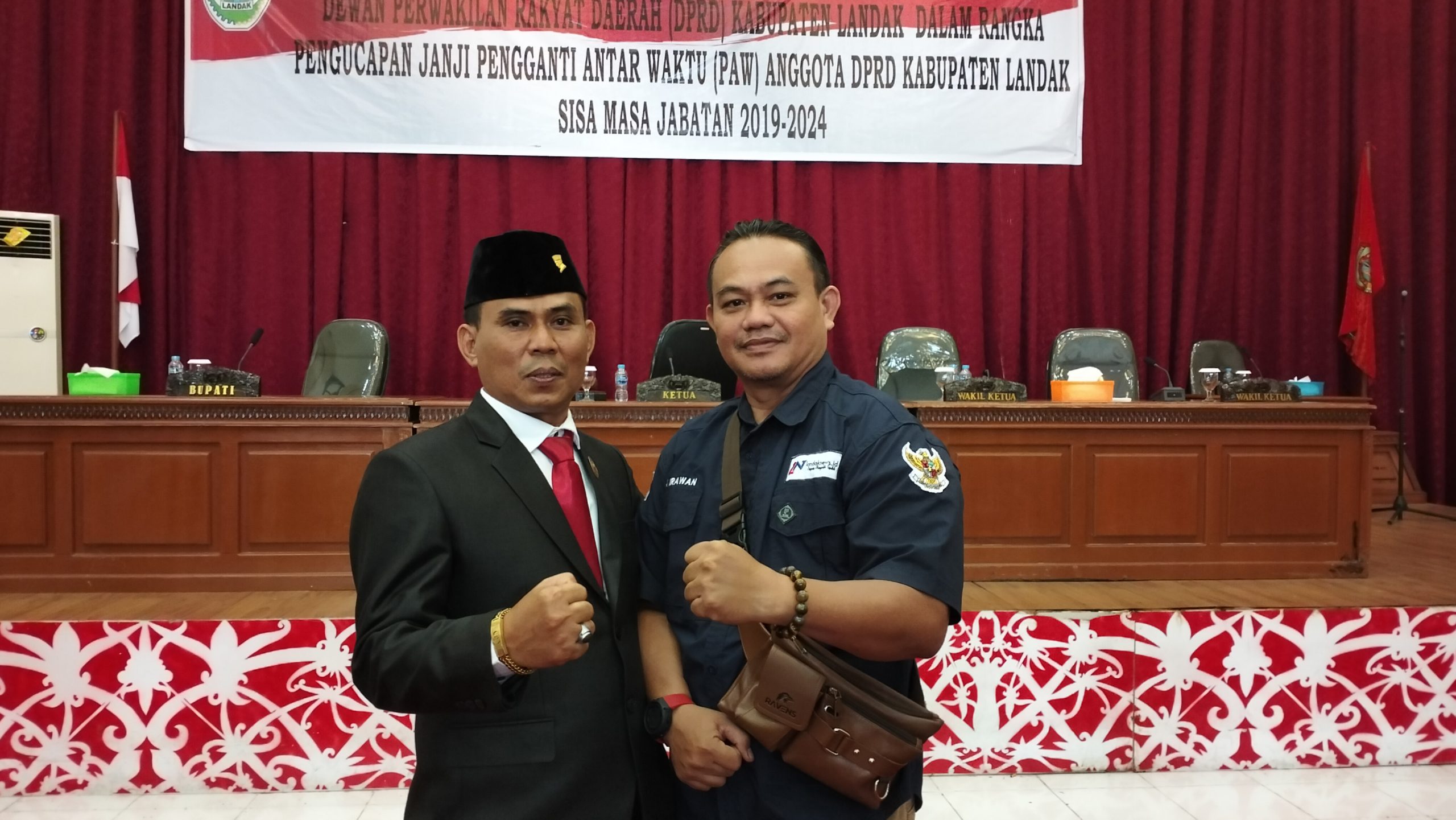 Setelah dibacakan Surat Keputusan (SK) dari Gubernur Kalimantan Barat Ketua DPRD Landak Heri Saman melaksnakan pelantikan dan pengambilan sumpah/janji.