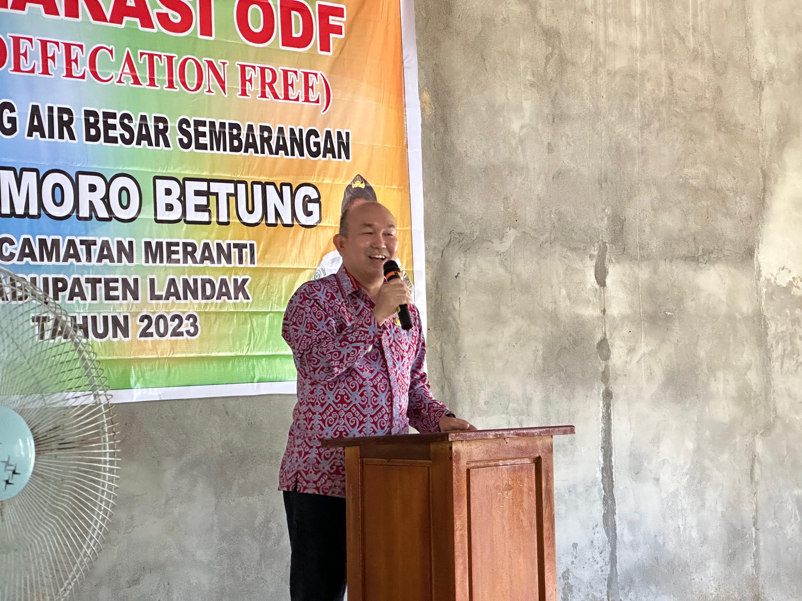 LANDAK – Pj. Bupati Landak Samuel, SE, M.Si menghadiri Deklarasi ODF (Open Declaration Free) Stop Buang Air Besar Sembarangan, di Aula Desa Moro Betung, Kecamatan Meranti. Jum’at (01/12/23).