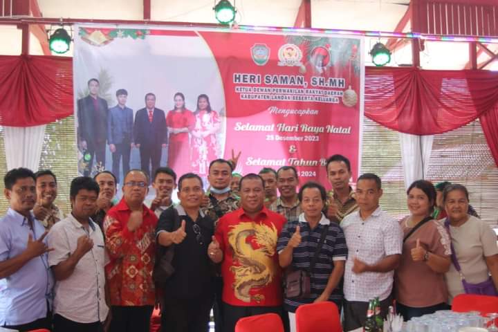 LANDAK – Ketua Dewan Perwakilan Rakyat Daerah (DPRD) Kabupaten Landak Heri Saman, S.H., M.H, Menggelar Open House Dalam Rangka Perayaan Natal di Rumah Dinas Ketua DPRD Landak. Selasa, (26/12/2023)