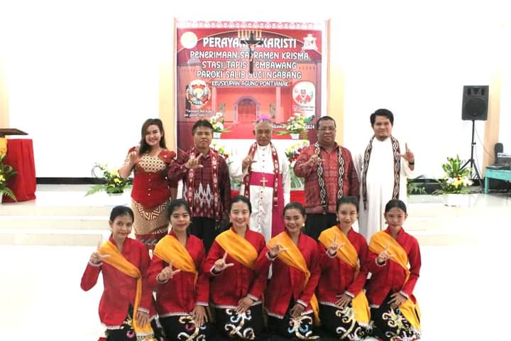 Turut hadir Pj. Bupati Landak yang diwakili Staf Ahli Bupati Bidang Pembangunan, Ekonomi, dan Keuangan Anem, S.E.,M.Si, Uskup Agung Pontianak Mgr. Agustinus Agus, Kepala Desa Engkadu, serta tamu undangan lainnya.