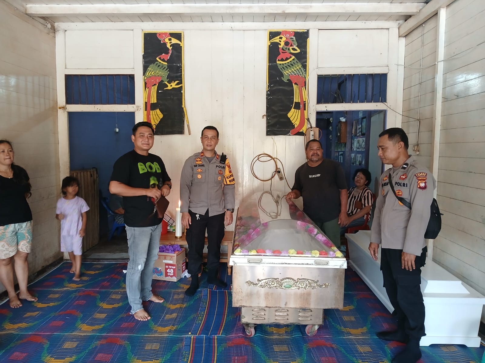 Kapolsek menjelaskan bahwa warga yang meninggal dunia ini bernama Lusia yang meninggal karena sakit dan sambang duka ini dilaksanakan agar masyarakat akan merasakan kehadiran Polri ditengah – tengah masyarakat.