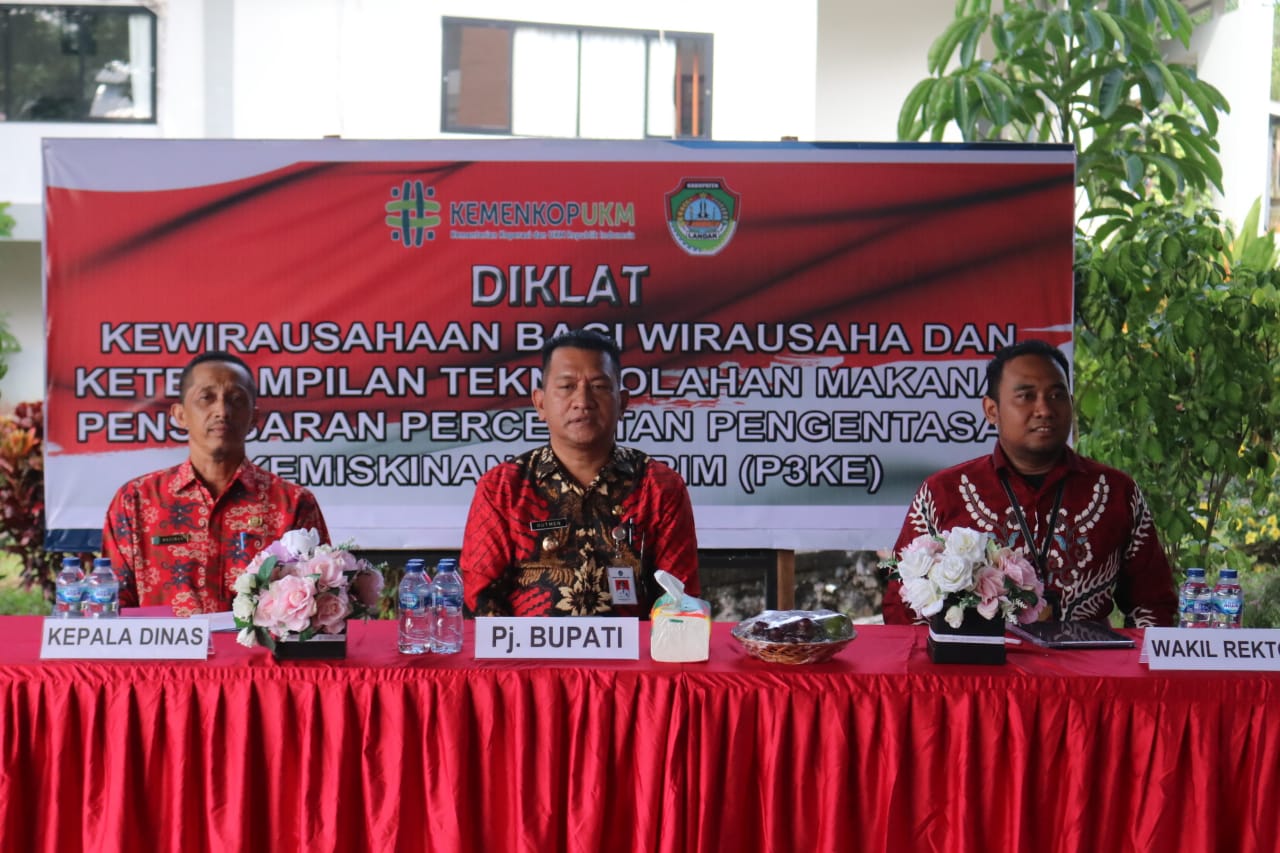 LANDAK, KALBAR – Pj. Bupati Landak apresiasi langkah Dinas Koperasi Usaha Kecil dan Menengah Perindustrian dan Perdagangan Landak bersama Universitas Santo Agustinus Hippo yang menggelar diklat kewirausahaan bagi wirausaha dan keterampilan teknis olahan makanan pensasaran percepatan pengentasan kemiskinan ekstrim di Kampus I Unika Hippo Ngabang, Kamis (14/11/2024).