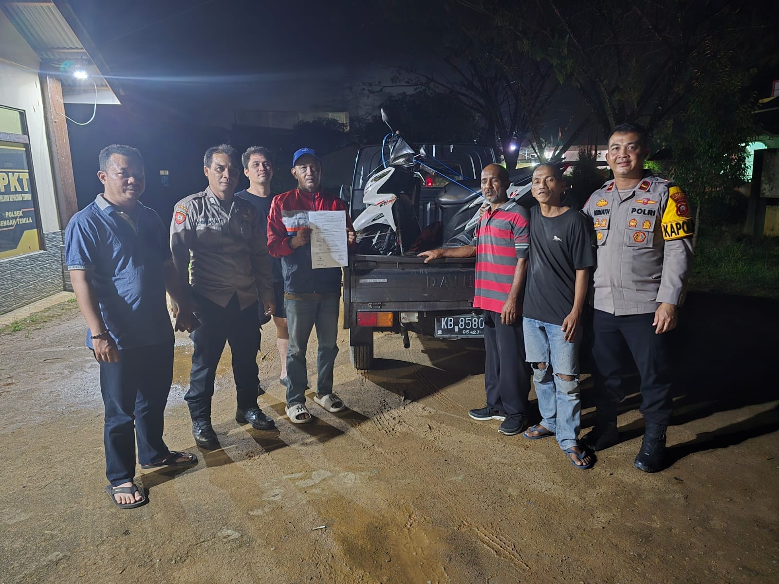 SENGAH TEMILA, LANDAK NEWS – Kapolsek Sengah Temila, Ipda Bernadus Didy Kusnadi, S.H., M.H., bersama anggota Piket SPKT dan Unit Reskrim Polsek Sengah Temila telah menyerahkan seorang laki-laki yang diduga Orang Dalam Gangguan Jiwa (ODGJ) bernama Syarif Mustafa Alqadri beserta 1 (satu) unit sepeda motor Honda Vario warna putih dengan nomor polisi KB 2280 BT kepada pihak keluarga dalam keadaan baik, pada Kamis (15/5/2025) malam.