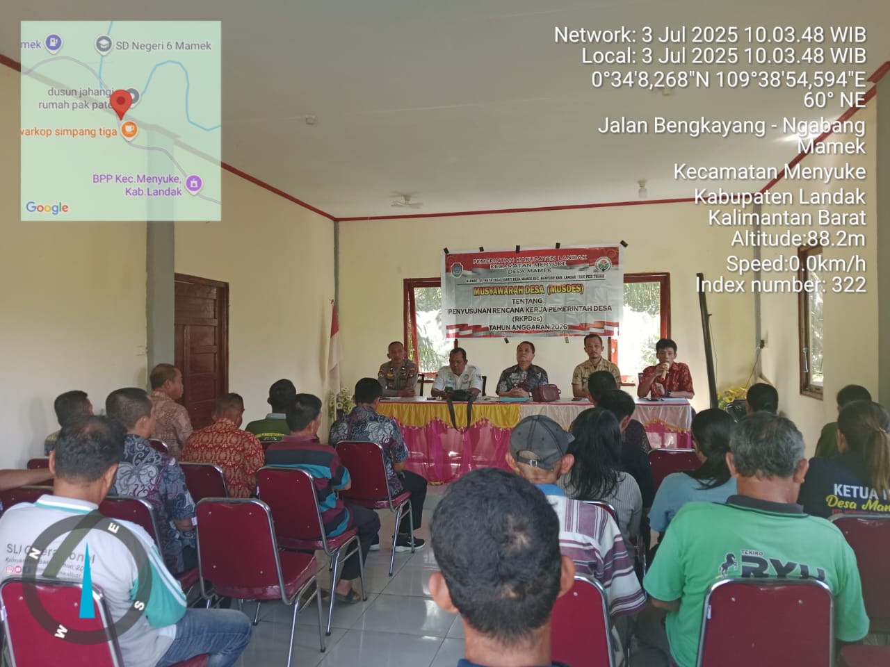 Kegiatan musyawarah Desa tersebut pada Hari Kamis Tanggal 03 Juli 2025 Pukul 09.00 Wib s/d selesai tempat di Kantor Desa Mamek.
