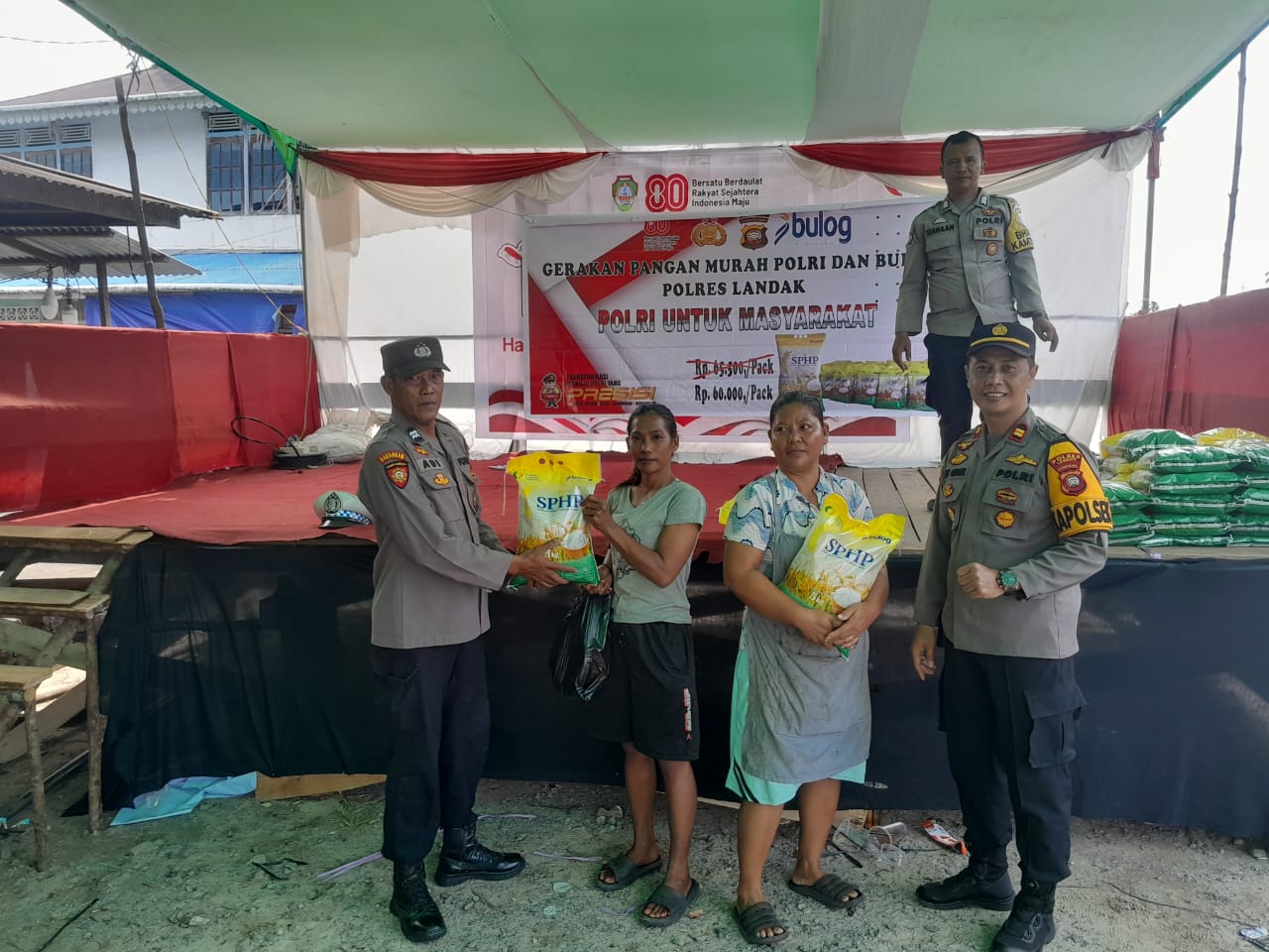 Mandor, Landak News – Dalam rangka mendukung ketahanan pangan sekaligus membantu meringankan beban masyarakat, Polres Landak bekerja sama dengan Bulog menggelar Gerakan Pangan Murah di Pasar Mandor, Dusun Mandor, Desa Mandor, Kecamatan Mandor, Kabupaten Landak pada Sabtu (16/8/2025).