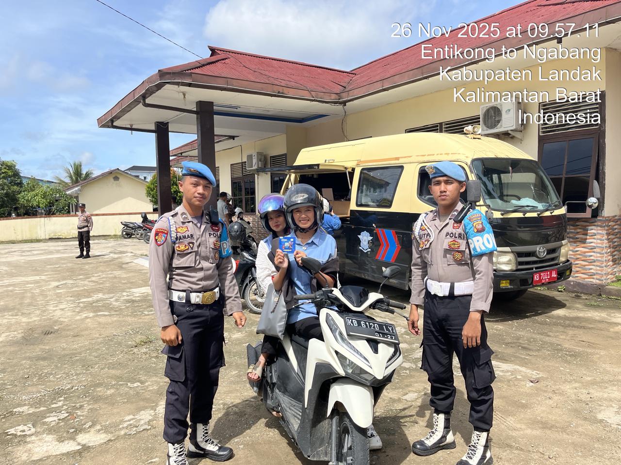 NGABANG, LANDAK NEWS – Personel Propam Polres Landak melaksanakan sosialisasi pemasangan stiker barcode Pengaduan Polri kepada masyarakat, Rabu (26/11/2025). Kegiatan ini disambut baik oleh warga yang menilai langkah tersebut mempermudah akses pengaduan serta meningkatkan transparansi pelayanan kepolisian.