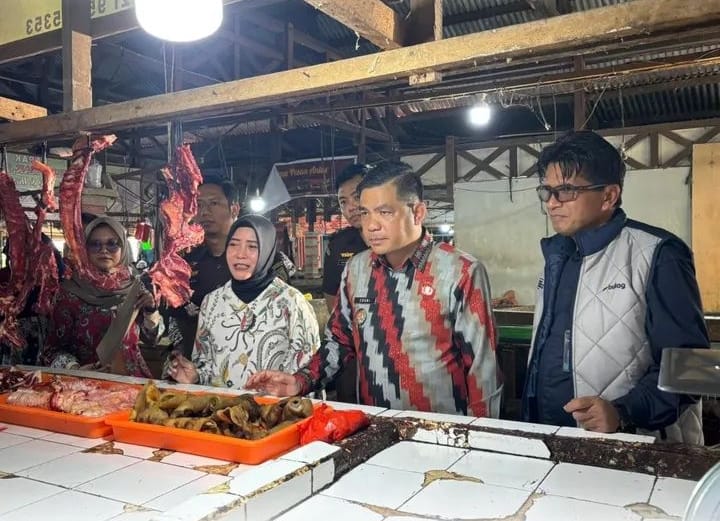 Dalam kegiatan tersebut, Wakil Bupati Landak bersama tim meninjau langsung sejumlah lapak pedagang yang menjual berbagai kebutuhan pokok seperti beras, minyak goreng, gula, telur, hingga bahan pangan lainnya.